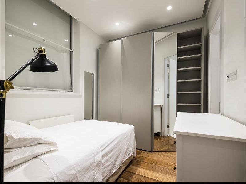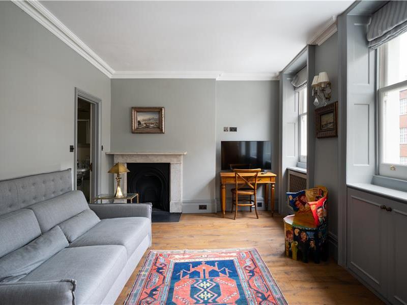 A generously proportioned apartment of 600 square feet, currently arranged with one bedroom, on the first floor of this popular purpose built apartment building in South Mayfair.