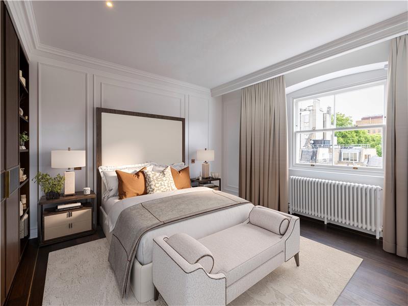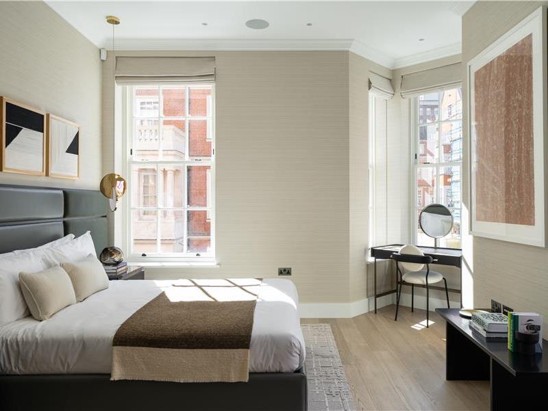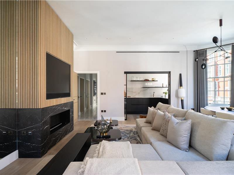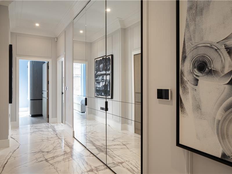 A beautifully appointed two-bedroom lateral apartment on the second floor of a newly refurbished period building in the heart of Mayfair, offering direct views along the iconic Mount Street.