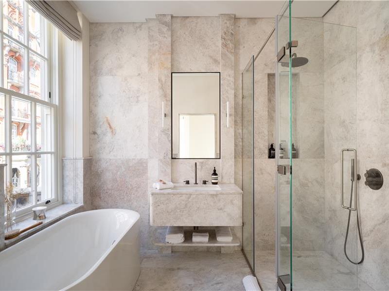 A two bedroom, three bathroom duplex apartment measuring 1,033 sq ft (96 sq m) occupying the lower floors of a well-managed, period building in Central Mayfair.